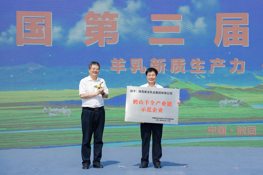 在大会上,中国奶业协会奶山羊专研委员会委员、西北农林科技大学副校长罗军致辞并为陕西秦龙乳业集团有限公司颁发“奶山羊全产业链示范企业”荣誉。